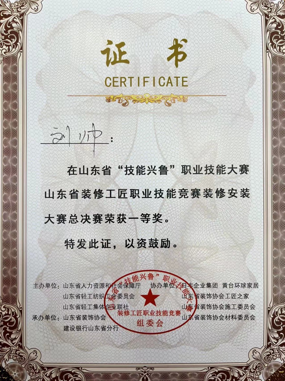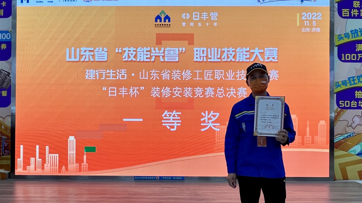恭喜济宁轻舟墅美装饰公司工程公司产业工人刘帅,荣获山东省“技能兴鲁”职业技能大赛、山东省装修工匠总决赛一等奖